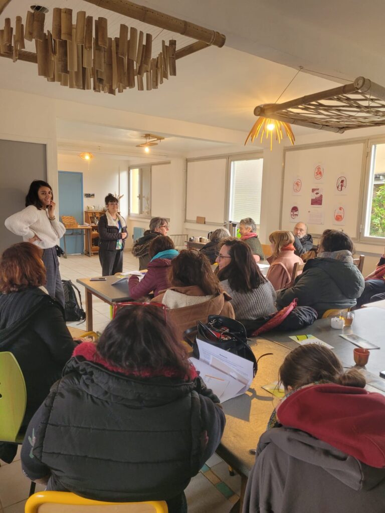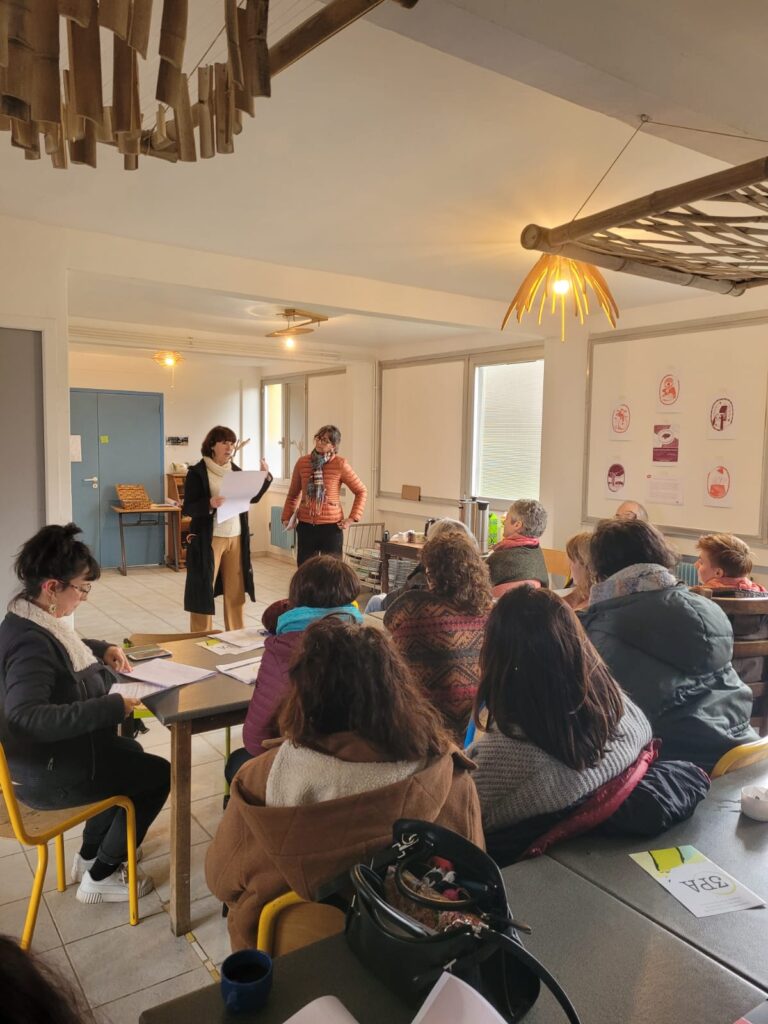 Alors il faut bien commencer quelque part, donc on a organisé une grande journée de rencontre à Lahage. On ne savait pas trop à quoi s’attendre et finalement des professionnel.les de santé, des asso voisines, des personnes concernées, des habitant.e.s du coin, des stagiaires de notre asso… ont répondu à l’invitation.